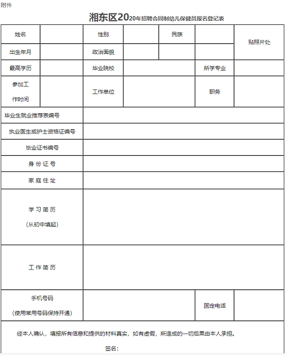 湘東區(qū)2020年招聘合同制幼兒保健員報(bào)名登記表