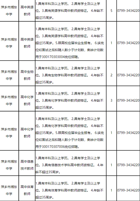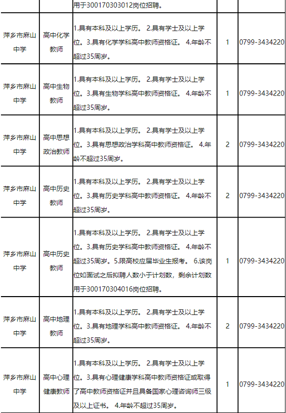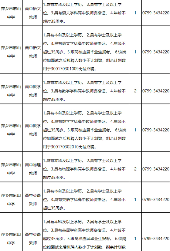 (三)符合招聘崗位具體條件。各招聘崗位在學(xué)歷、專業(yè)、年齡等方面具體條件,請(qǐng)查閱《江西省2020年中小學(xué)教師招聘崗位信息表》。