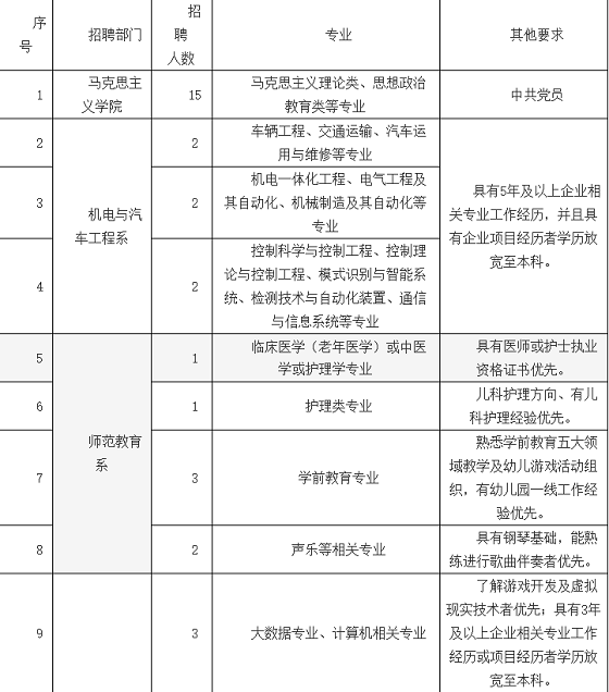 1.學歷:全日制碩士研究生及以上(具有國家職業資格認證的高級技師及以上的高技能人才、具有副高級及以上職稱的高層次人才、“985”、“211”學校畢業生學歷放寬至本科);