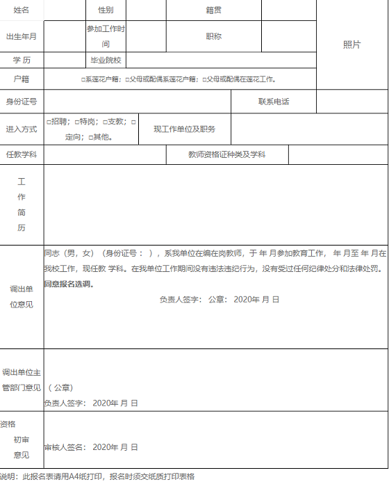 附件:2020年蓮花縣選調(diào)縣外蓮花籍教師報名表