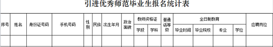 附件4:引進(jìn)優(yōu)秀師范畢業(yè)生報(bào)名統(tǒng)計(jì)表