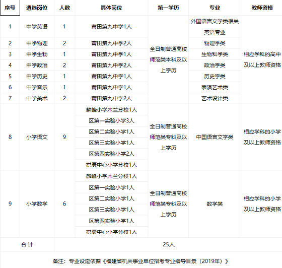 2020年莆田教師招聘 福建莆田市荔城區公開遴選教師【25人】