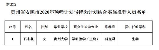 1.安順市2020年“特崗計(jì)劃”教師招聘計(jì)劃表