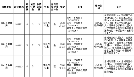 附件1:含山縣2020年公開招聘幼兒教師崗位表