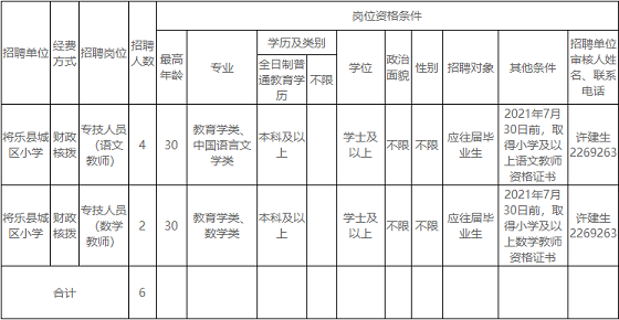 2020年將樂縣第二批公開招聘學校緊缺急需專業工作人員崗位信息表