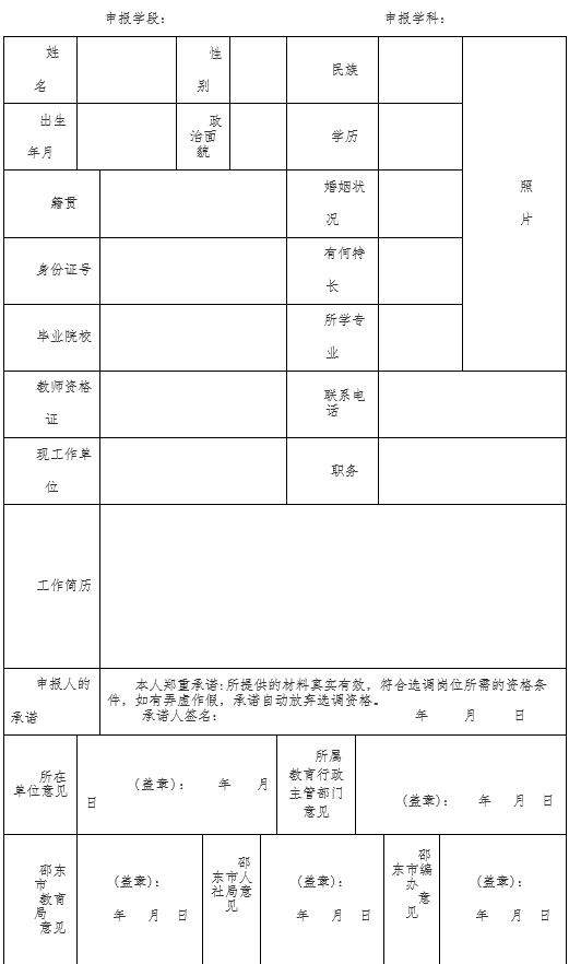 2、本表一式一份,現場資格審查時交邵東市教育局。