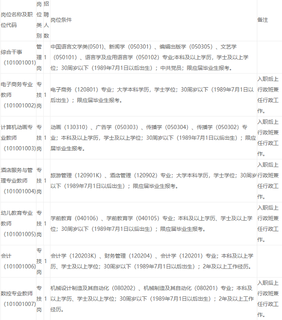 1.以上崗位條件中專業名稱后括號中的數字為學科專業代碼。