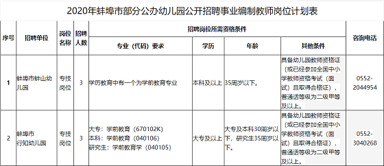 2020年蚌埠教師招聘 安徽蚌埠市部分公辦幼兒園公開招聘事業編制教師【6人】(2)