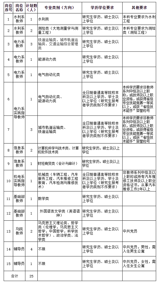 2020年福建水利電力職業(yè)技術(shù)學(xué)院第三批公開(kāi)招聘工作人員【25人】