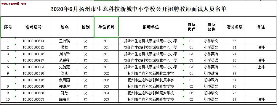 根據(jù)《2020年6月?lián)P州市生態(tài)科技新城中小學(xué)校公開(kāi)招聘教師簡(jiǎn)章》的要求,經(jīng)過(guò)公開(kāi)報(bào)名、資格初審、筆試、資格復(fù)審等程序,定于2020年8月8日面試。請(qǐng)通過(guò)資格復(fù)審的考生務(wù)必于8月6日-7日(上午9:00-12:00,下午2:30-5:30)到揚(yáng)州市生態(tài)科技新城管委會(huì)社會(huì)事業(yè)局(揚(yáng)州市萬(wàn)福東路99號(hào))領(lǐng)取面試通知書(shū)及須知,逾時(shí)作自動(dòng)放棄處理。