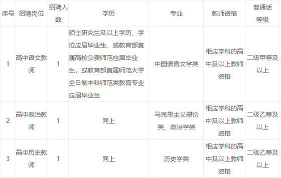 1.招聘對象需具有中華人民共和國國籍,年齡為35周歲及以下。熱愛教育事業,具有敬業奉獻精神,思想品德好,身體健康,能勝任中學教育工作。