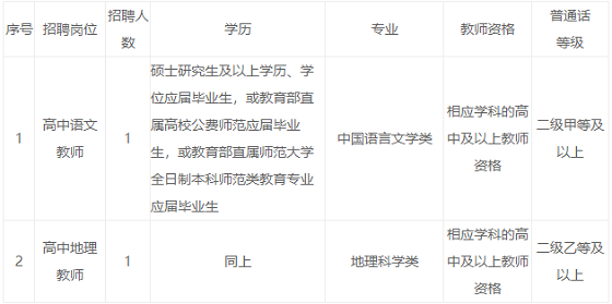 1.招聘對象需具有中華人民共和國國籍,年齡為35周歲及以下。熱愛教育事業,具有敬業奉獻精神,思想品德好,身體健康,能勝任中學教育工作。