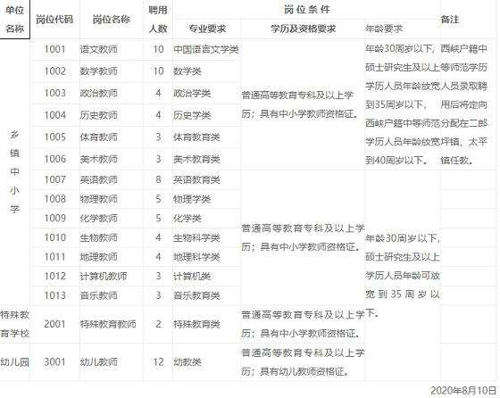 新招聘教師由教體局面向基層、面向城區以外需求教師的鄉鎮進行分配,其中報考中小學語文、數學、政治、歷史、體育、美術教師崗位的西峽戶籍中等師范學歷人員將定向分配至二郎坪鎮和太平鎮。對招錄的特殊教育教師分配到縣特殊教育學校任教;對招聘的幼兒教師分配到鄉鎮幼兒園任教,若龍成社區幼兒園今秋能開班,則根據實際需要將新招聘幼兒園教師全部或部分分配到該社區幼兒園任教。