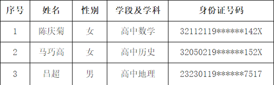 江蘇省梁豐高級中學2020年擬引進高層次教育人才人選名單