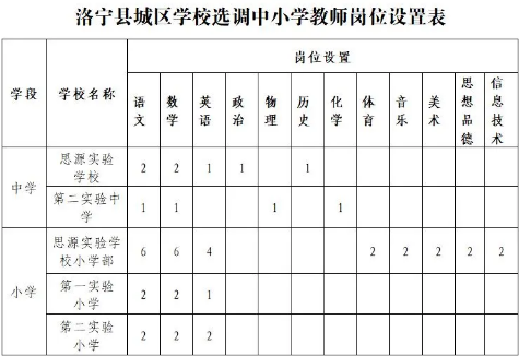 2020年洛陽教師招聘 河南洛陽洛寧縣部分城區學校公開選調教師工作實施方案【48人】