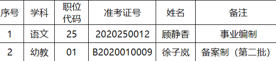 根據《2020年張家港市公開招聘事業編制教師簡章》《2020年張家港市公開招聘備案制教師簡章》“因考生體檢、政審不合格以及因自動放棄錄取資格而出現缺額時,按該崗位報考人員考試總成績從高分到低分進行遞補。”的相關規定,現將遞補進入體檢人員名單公告如下: