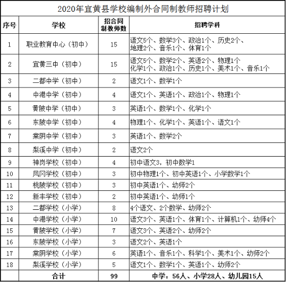 招聘編制外合同制教師99名。招聘崗位及數(shù)量如下: