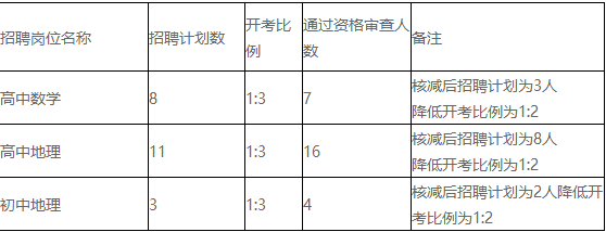 根據2020年8月10日發布的《江蘇省鹽城市教育局直屬學校2020年暑期公開招聘教師公告》,8月19日網上報名結束并完成資格審核,有部分職位審核通過人數未達開考比例,經市人社局同意,現核減部分職位招聘計劃并降低開考比例。具體情況如下: