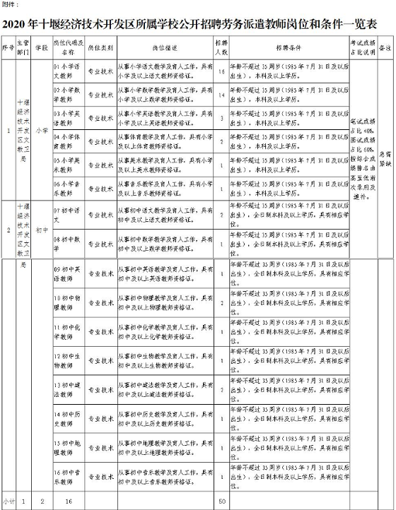 附件:2020年十堰經(jīng)濟(jì)技術(shù)開發(fā)區(qū)所屬學(xué)校公開招聘勞務(wù)派遣教師崗位和條件一覽表