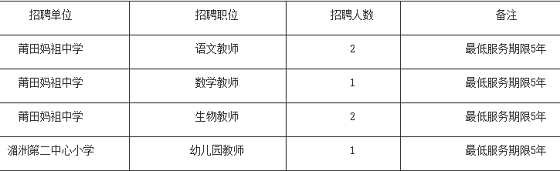招聘條件和要求詳見《莆田市湄洲島2020年公開招聘中小學幼兒園新任教師方案》。