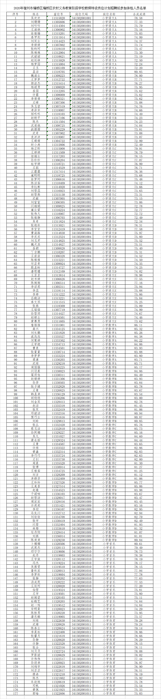 附件:2020年宿州市埇橋區農村義務教育階段學校教師特設崗位計劃招聘擬參加體檢人員名單.xlsx