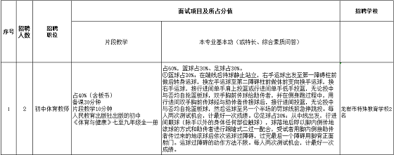 龍巖市市屬學校2020年公開招聘新任教師第二輪補充招聘面試項目表