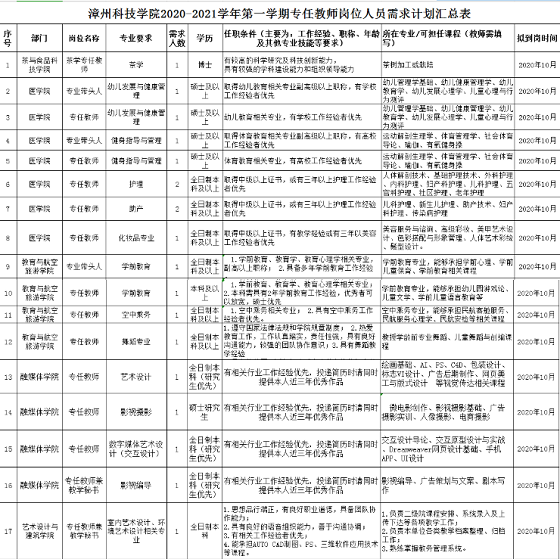2020年漳州教師招聘 福建漳州科技職業(yè)學(xué)院教職員工招聘公告