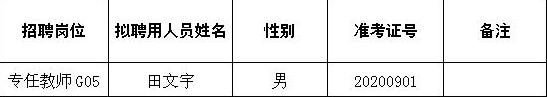 根據《湖南環境生物職業技術學院2020年第二批公開招聘公告》及有關規定,經報名、資格審查、考核、體檢、考察等程序,經學院黨委會研究,確定田文宇同志為2020年湖南環境生物職業技術學院第二批公開招聘擬聘用人選,現予以公示。