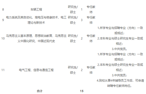 河南工學院2020年公開招聘工作人員(碩士)一覽表
