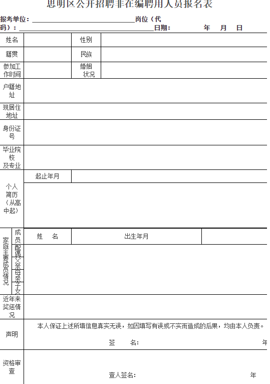 附件:《思明區公開招聘非在編聘用人員報名表》