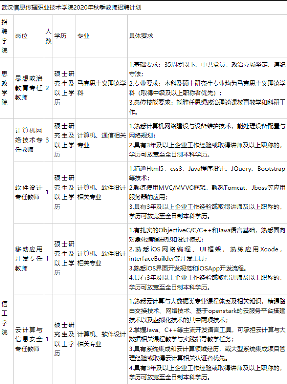 2020湖北武漢信息傳播職業技術學院教師招聘公告【21人】