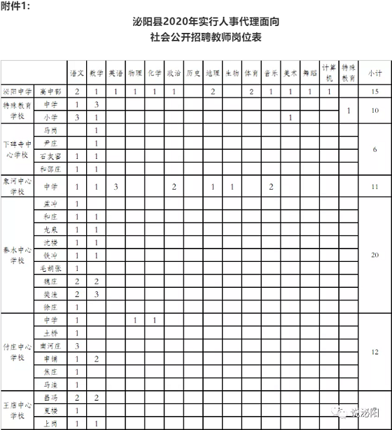 1.《泌陽縣2020年實(shí)行人事代理面向社會(huì)公開招聘教師崗位表》