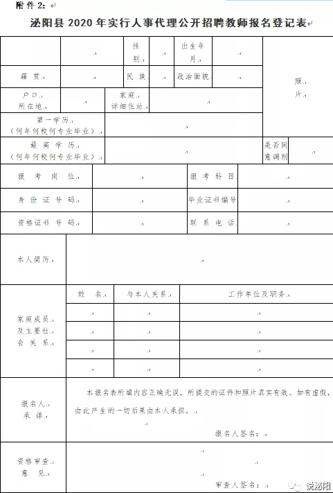 2.《泌陽縣2020年實(shí)行人事代理公開招聘教師報(bào)名登記表》