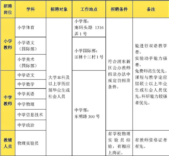 2021上海市實(shí)驗(yàn)學(xué)校招聘教師公告