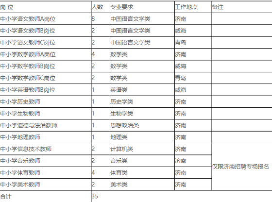 備注:A、B、C三類崗位分別面向濟南、威海、青島定向招聘,入職后工作地點將位于上述三個城市,但人事關系均屬于山東大學。