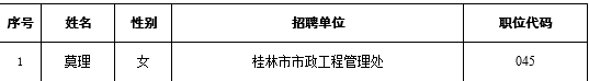 根據《桂林市2020年面向全國部分高校招聘事業單位高層次人才公告》,現將擬聘人員名單(第四批1人)公示如下,公示期為7個工作日。如有異議,請于2020年11月11日前,以書面形式署真實姓名向市人社局事業單位管理科反映。聯系電話:2815018、2866296
