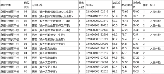 2020年福建省泉州市直有關學校招聘編外工作人員成績公示