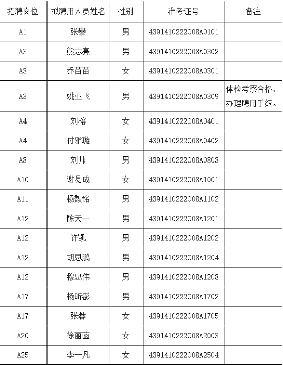 根據《張家界航空工業職業技術學院2020年公開招聘公告》及有關規定,經報名、資格審查、筆試、面試、試講、體檢、考察等程序,經學院黨委研究,確定張攀等25名同志為2020年張家界航空職院公開招聘擬聘用人選,現予以公示。