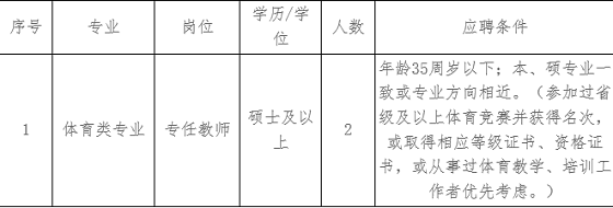 體育學院開設有社會體育指導與管理、休閑體育2個本科專業。因學院發展需要,特面向社會招聘熱愛教育事業,能從事體育教學訓練和科研工作的專業人才。