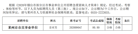 2020年山東省煙臺萊州市事業單位公開招聘急需緊缺人才擬聘用人員公示(第三批)