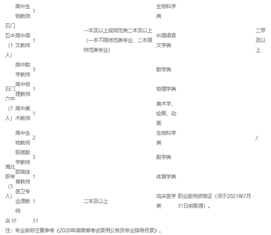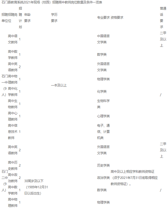 1.石門縣教育系統2021年現場(校園)招聘高中教師崗位數量及條件一覽表