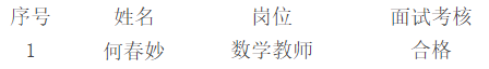 根據《思明區教育系統非在編聘用人員公開招聘實施細則(廈思教〔2014〕95號)》及《廈門市前埔南區小學關于非在編人員招聘簡章》要求,現將擬聘人員的面試考核結果公示如下: