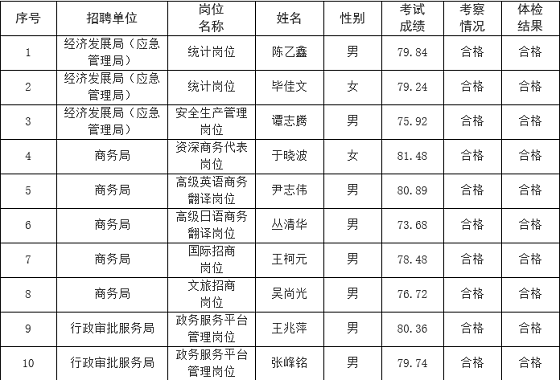 根據《2020年威海經濟技術開發區公開招聘優秀人才公告》規定,經公開招聘考試、考察、體檢等工作,現對2020年威海經濟技術開發區公開招聘優秀人才部分擬聘用人員予以公示。公示期為7個工作日,自2020年12月4日至2020年12月14日(不含節假日)。