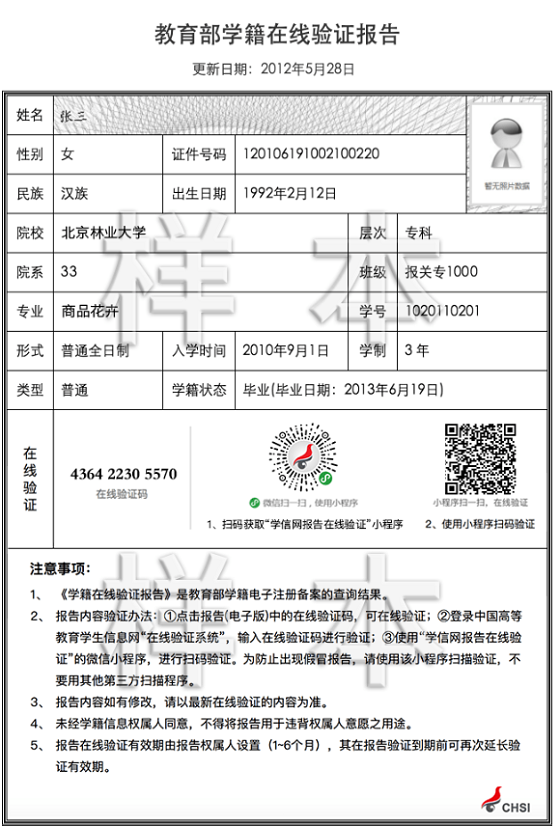 3.學信網學歷證書電子注冊備案表打印件樣張;
