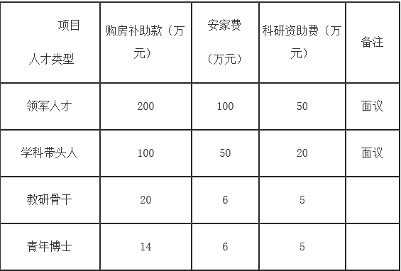 1.校院將給予符合校院《人才引進暫行辦法》規定類型人才條件的全職引進人員提供相應的購房補助款、安家費(稅前,人民幣)和科研資助費: