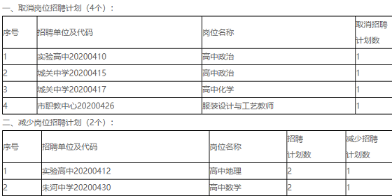 按照《監(jiān)利市2020年度教育系統(tǒng)事業(yè)單位公開招聘工作人員公告》的有關(guān)要求,根據(jù)筆試情況,因缺考等因素達(dá)不到規(guī)定比例的,擬對部分崗位招聘計(jì)劃進(jìn)行調(diào)整,現(xiàn)予以公告: