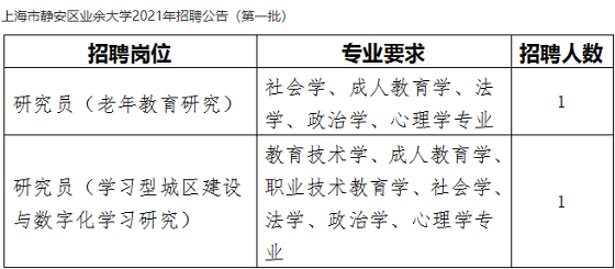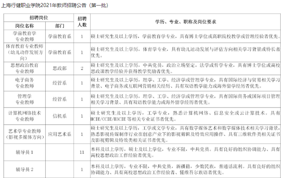 (三)上海行健職業學院、上海市靜安區業余大學招聘條件見學校網站。
