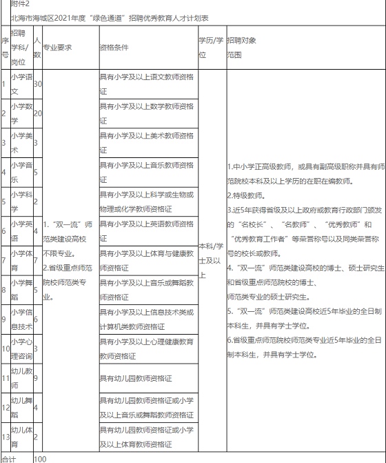 2.北海市海城區(qū)2021年度“綠色通道”招聘優(yōu)秀教育人才計劃表