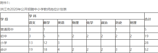 附件:1、洪江市2020年公開招聘中小學教師崗位計劃表