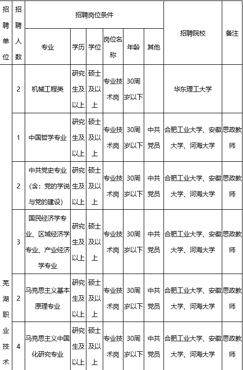 2021年蕪湖職業(yè)技術(shù)學(xué)院赴全國重點院校公開招聘緊缺專業(yè)應(yīng)屆畢業(yè)生計劃